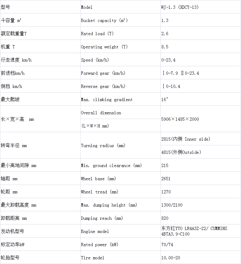 產品詳情 XDCY-13 1.3立方內燃鏟運機 在線咨詢 產品詳情 ●動力系統采用東方紅4105增壓發動機,儲備扭矩大,動力強勁,皮實耐造;故障率低,維修簡單,適應井下高溫、潮濕等惡劣工況。 ● 傳動系統采用雙渦輪變速箱,并匹配大速比礦山機械輪邊減速橋,實現低速大扭矩,使一檔鏟裝更有力,鏟斗易于裝滿,作業效率高。 ●工作系統采用先導操控,使工作操作更加簡單,工作效率更高。 ●電氣系統經過防水、防潮設計,適應井下潮濕工況。 ●發動機進氣系統采用油浴式空氣濾清器,取代普通的紙質空氣過濾器(紙質濾芯會因進氣潮濕而變形堵塞,失去過濾效果),無需更換濾芯。 ●尾氣凈化系統采用水過濾裝置+氧化催化器,實現雙級過濾,尾氣以水霧的型式排出并快速沉降到地面,大大降低空氣污染,保護巷道環境及駕駛員身心健康。 ●行車制動為多盤濕式制動,使制動安全可靠。 ●整車機架鋼板加厚,整車鋼性增強,鏟斗鏟刃采用高強度合金鋼制造,耐磨抗剪切, V型結構,減小了鏟取阻力,使用壽命更長。 ●采用耐磨防穿刺光面橡膠輪胎,使用壽命長。 ●爬坡能力強,滿載最大爬坡16°,在卷揚機輔助下,可用于25°以內斜坡道打掘進,替代扒渣機。 ●該機后車架可拆成5部分,便于下井。 ●該機結構緊湊,操作方便,可進行鏟、裝、運、卸一體作業,工作效率高,適合回采出礦和巷道掘進出碴,以及工作場地和道路的修筑平整、材料運輸等輔助作業。
