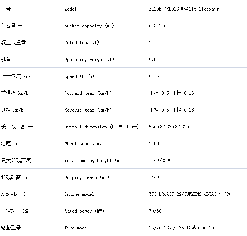 ZL20E (XD928) 2.0噸側座井下裝載機